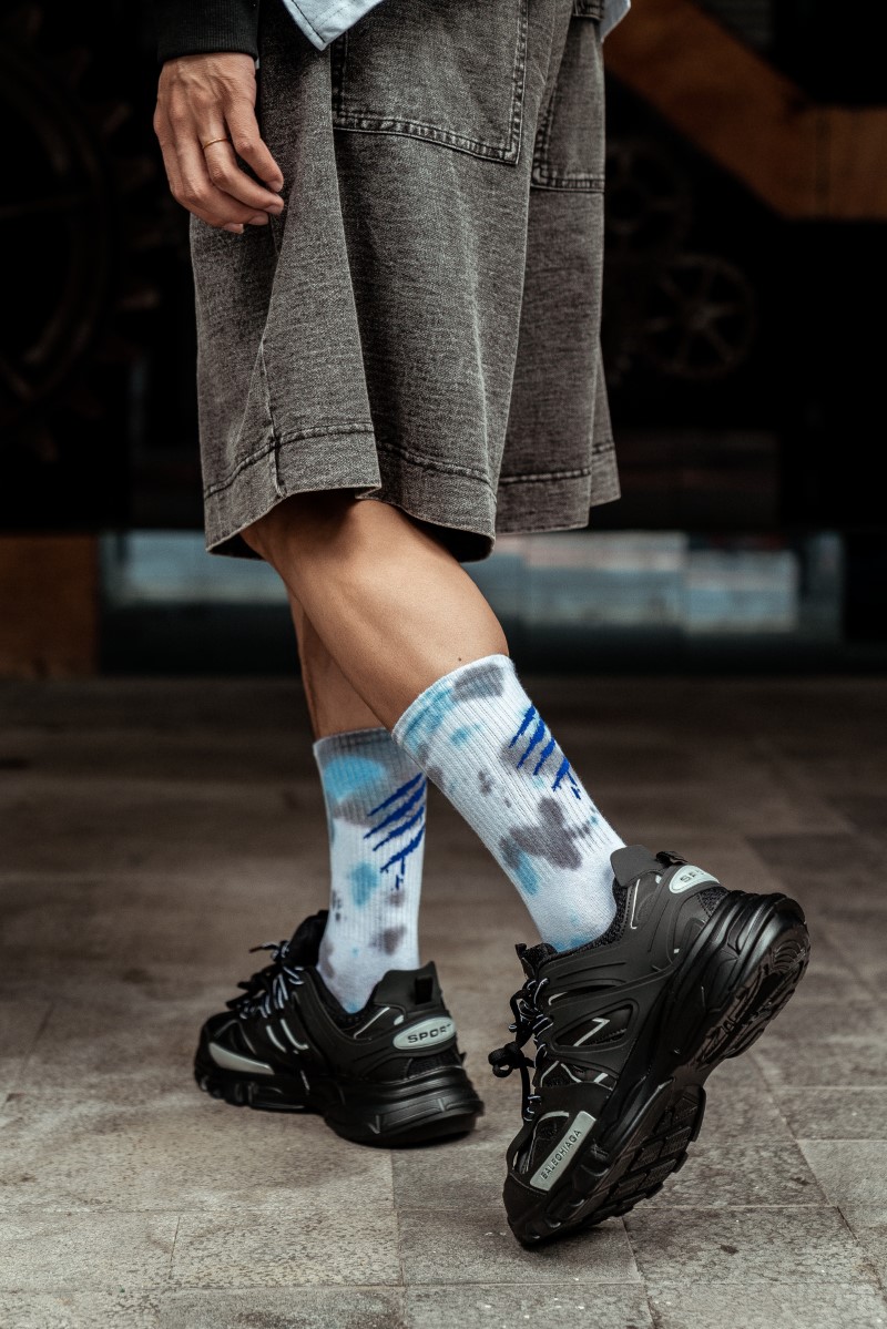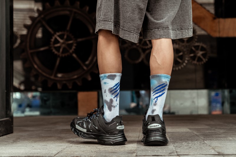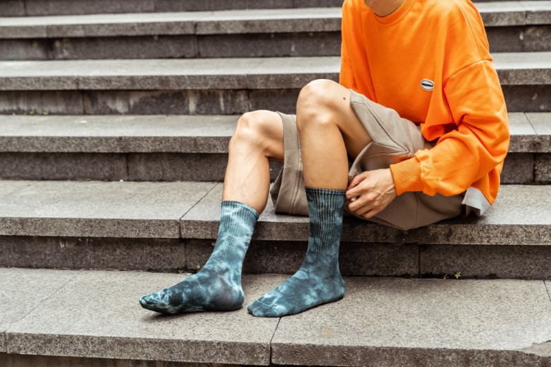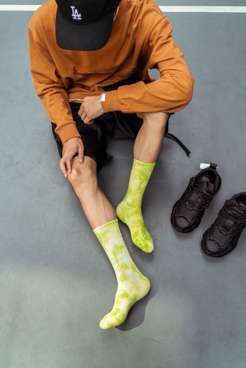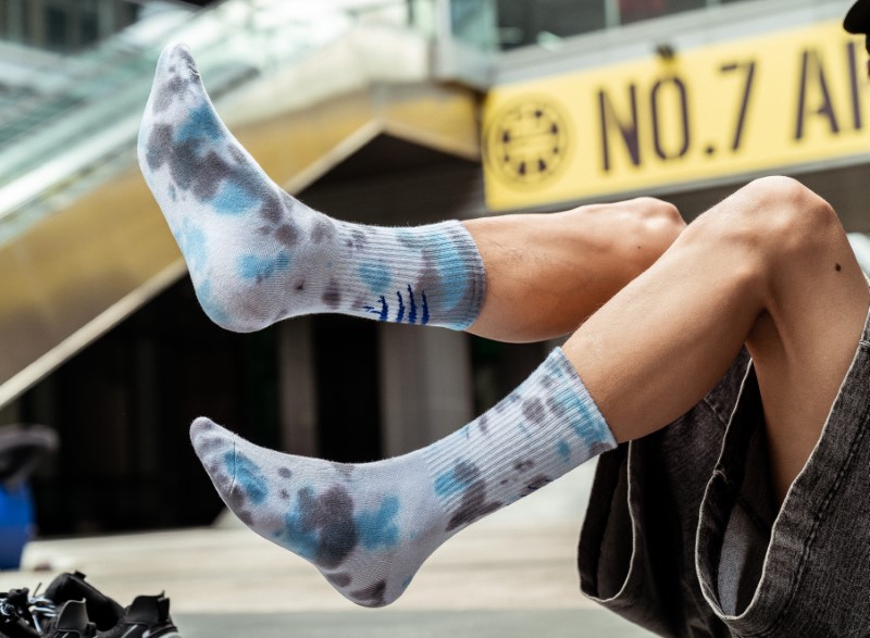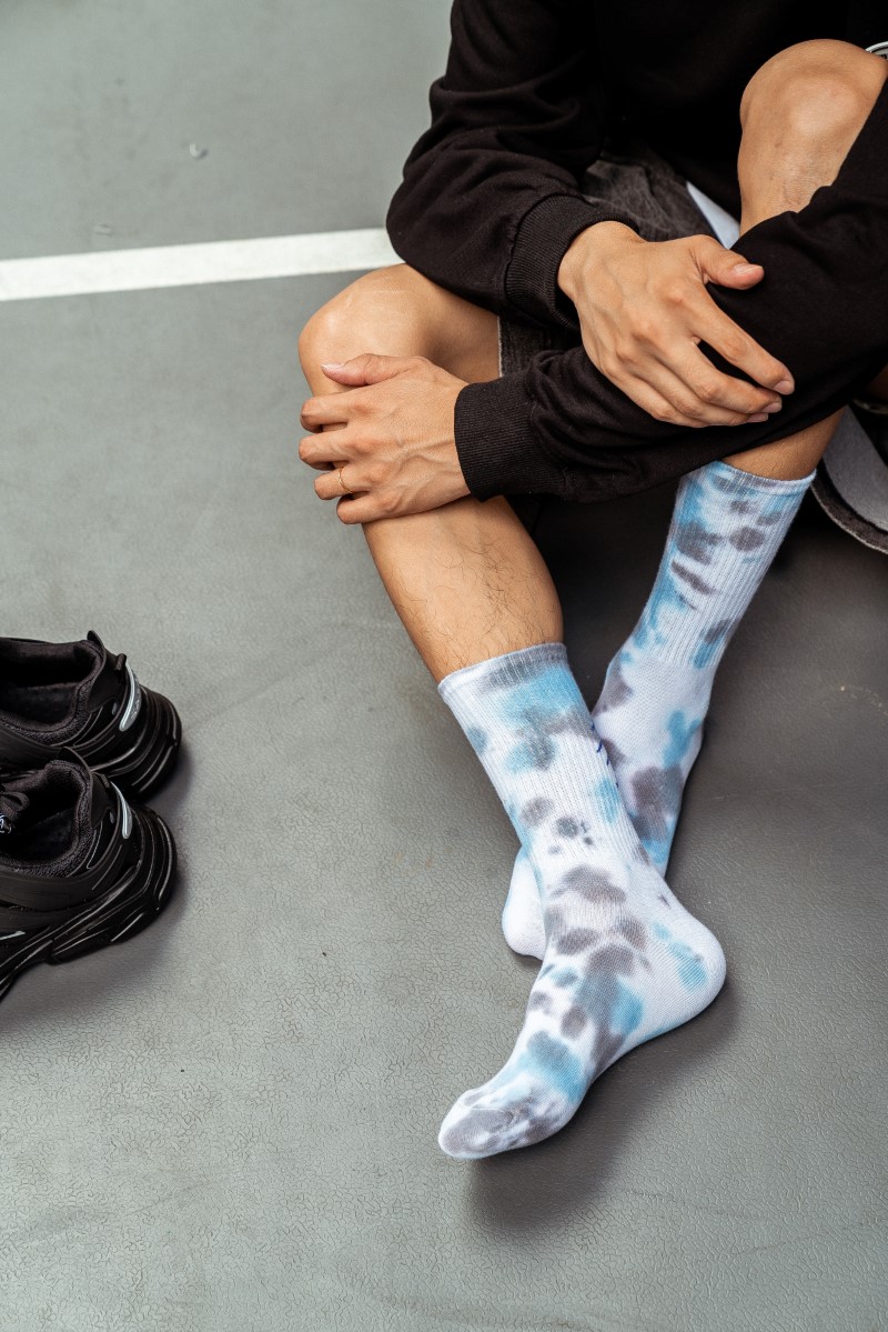 0138 抓痕平板扎染中筒袜