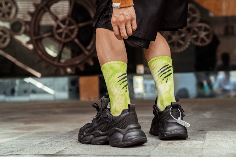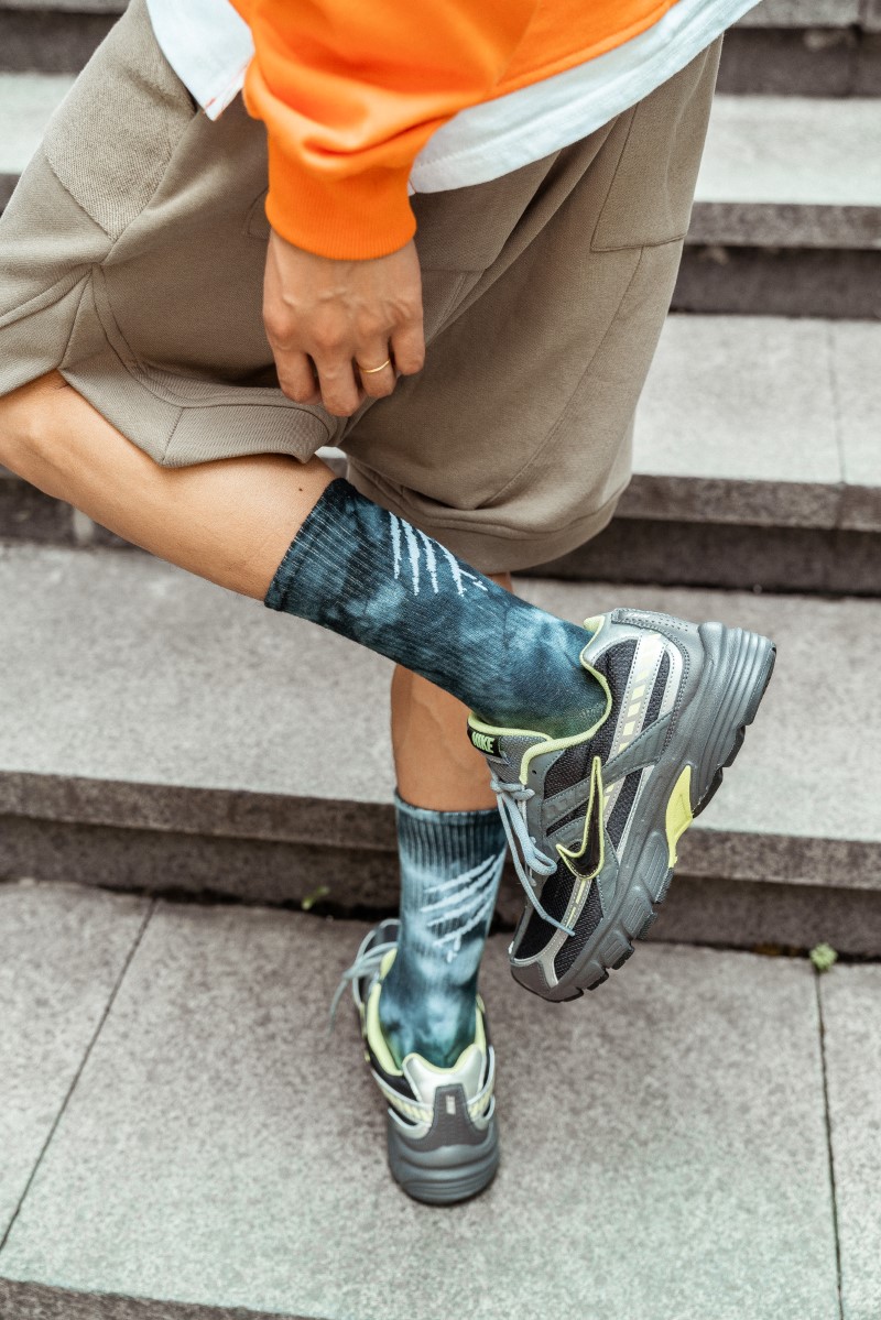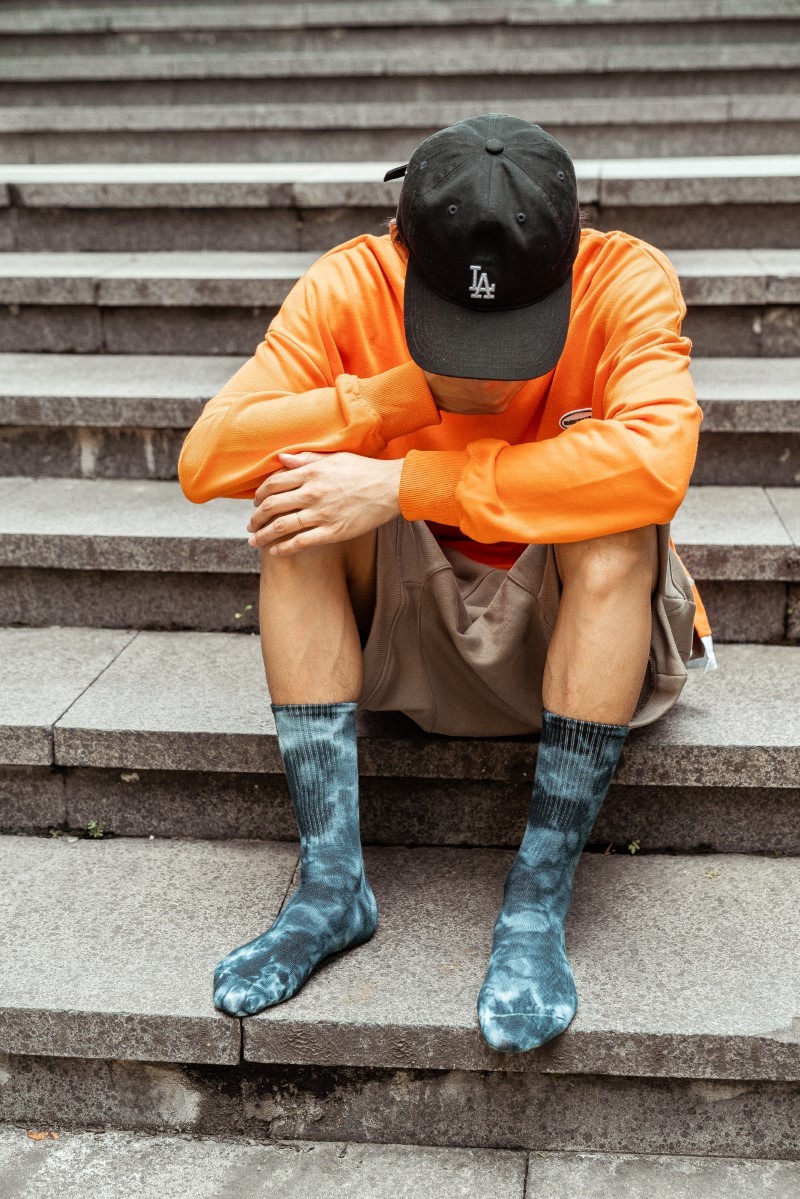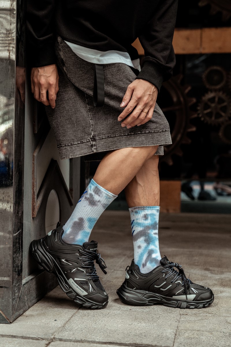0138 抓痕平板扎染中筒袜
