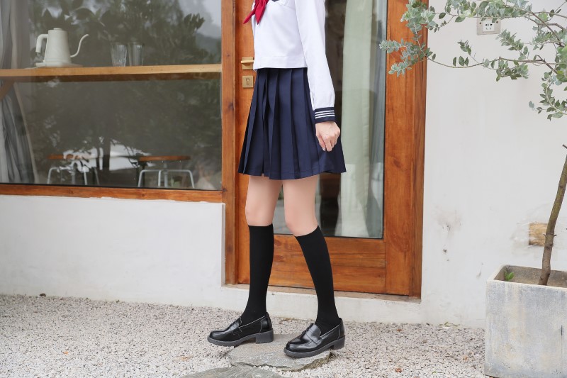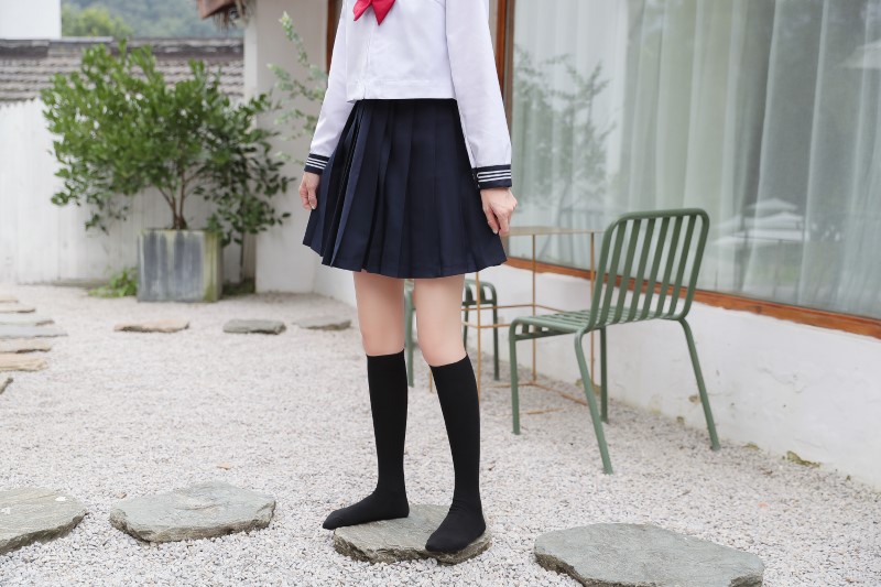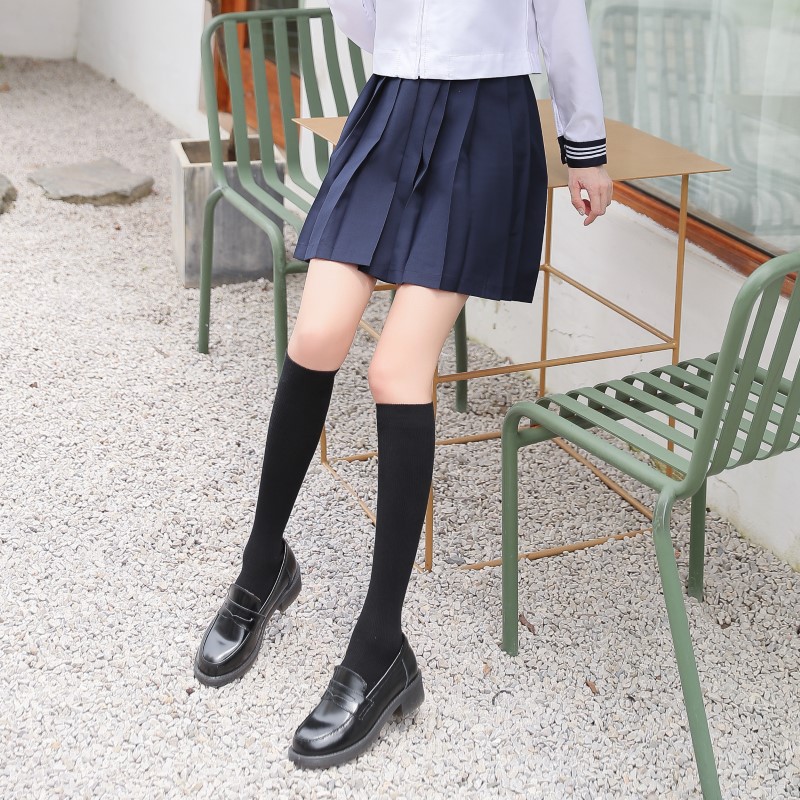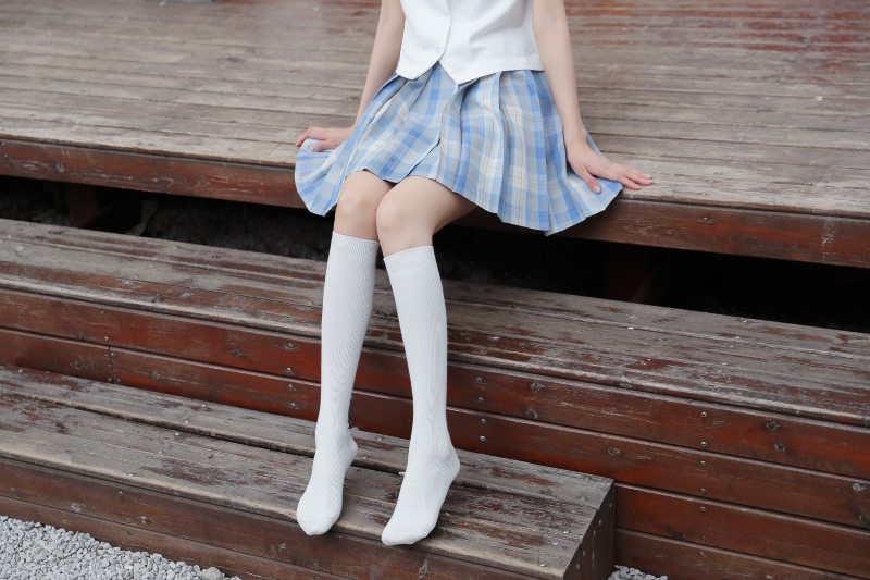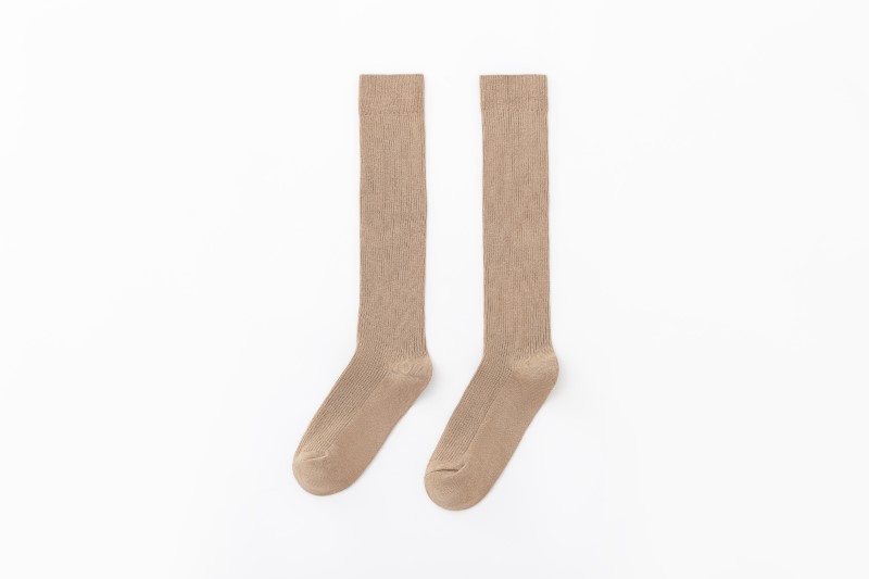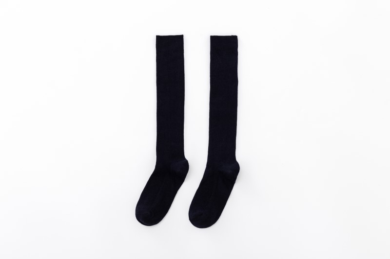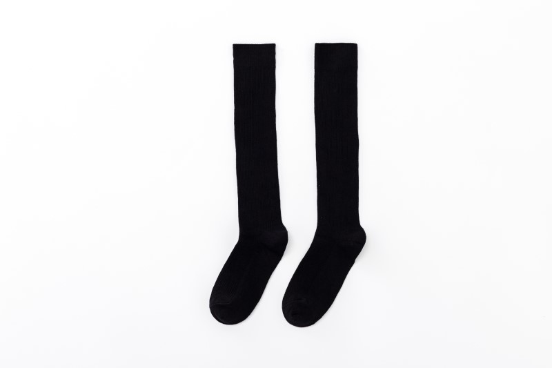 2009 double needle thin vertical strip solid color calf socks