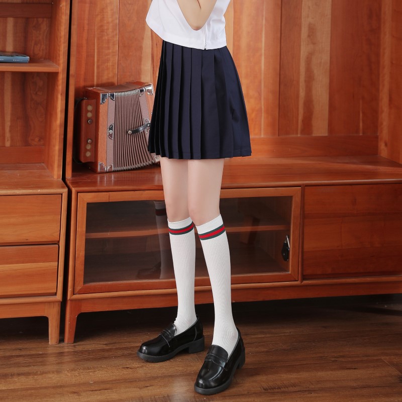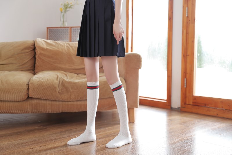 2098 double-needle color bar vertical calf socks