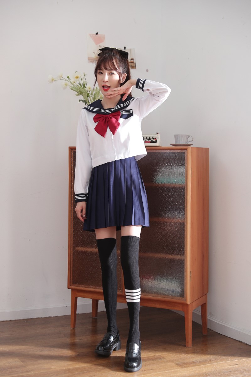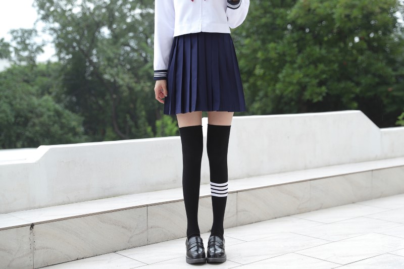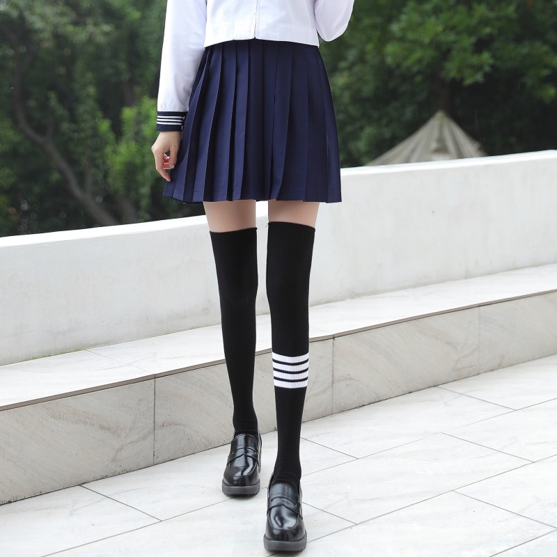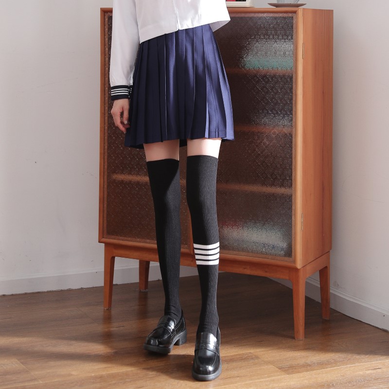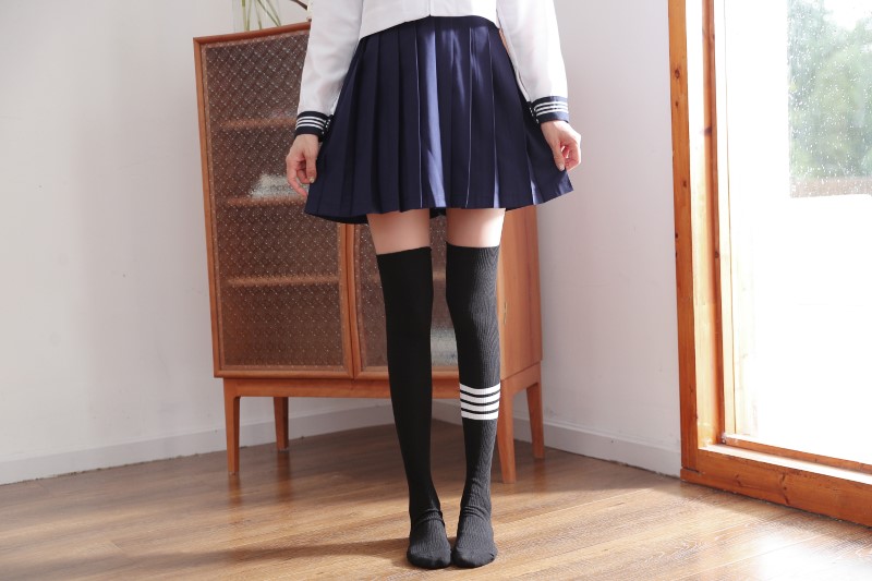 3030 double-needle single four-bar vertical strip over-the-knee socks