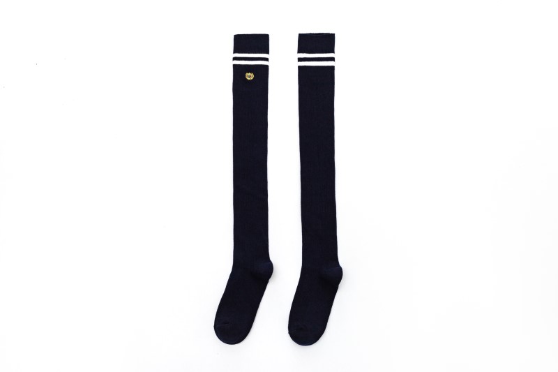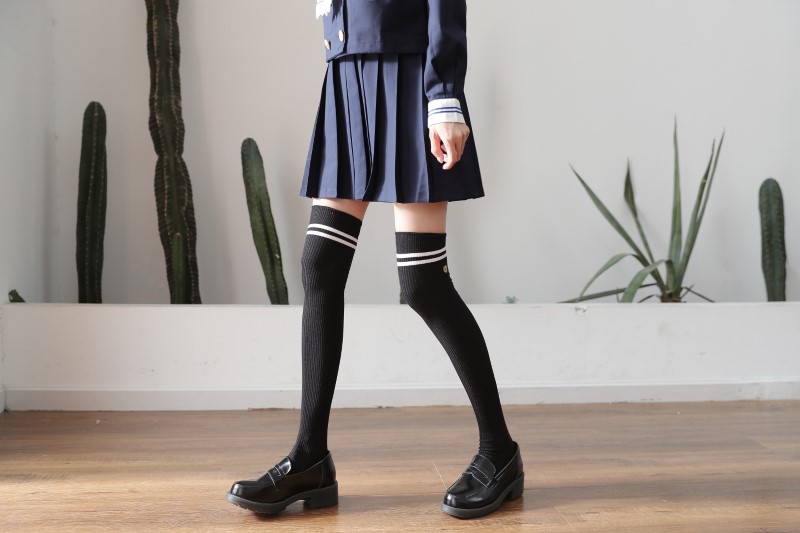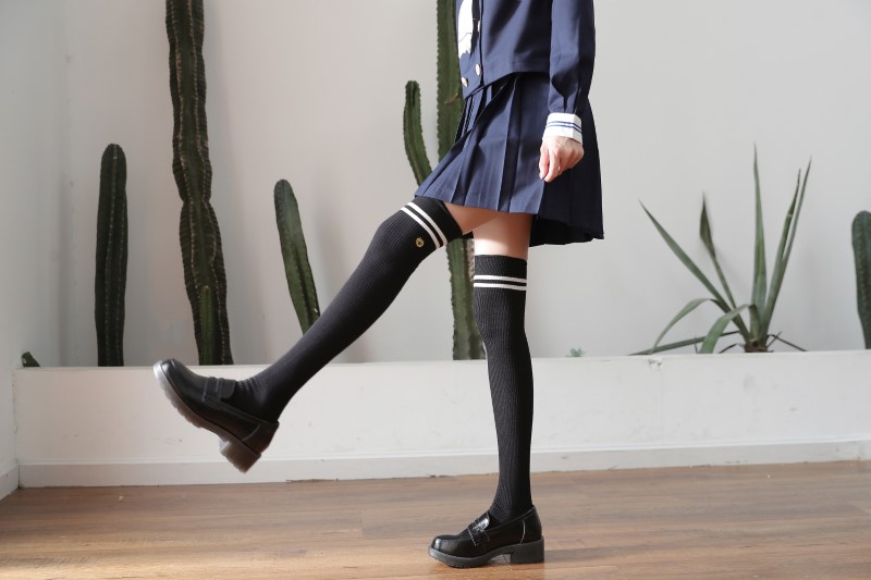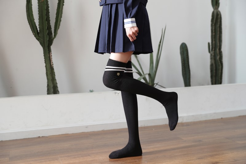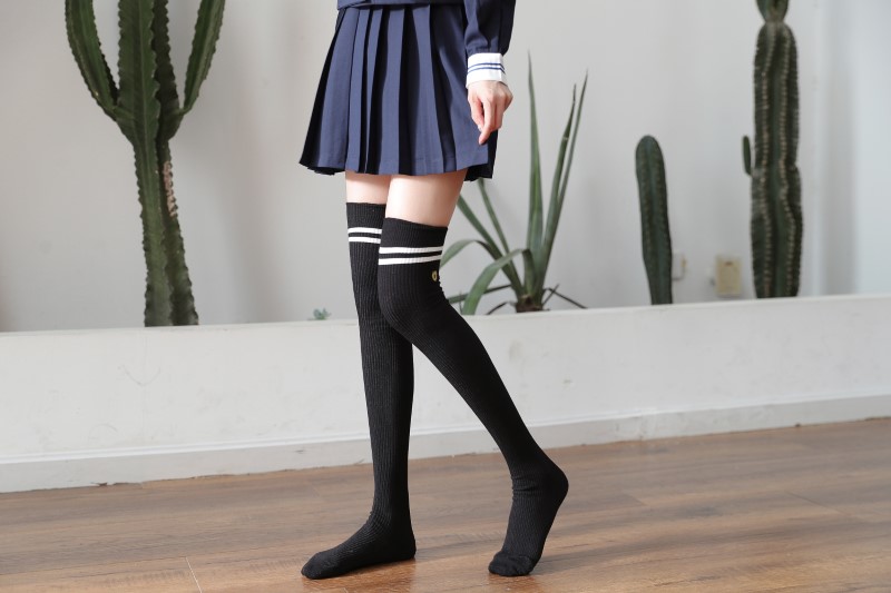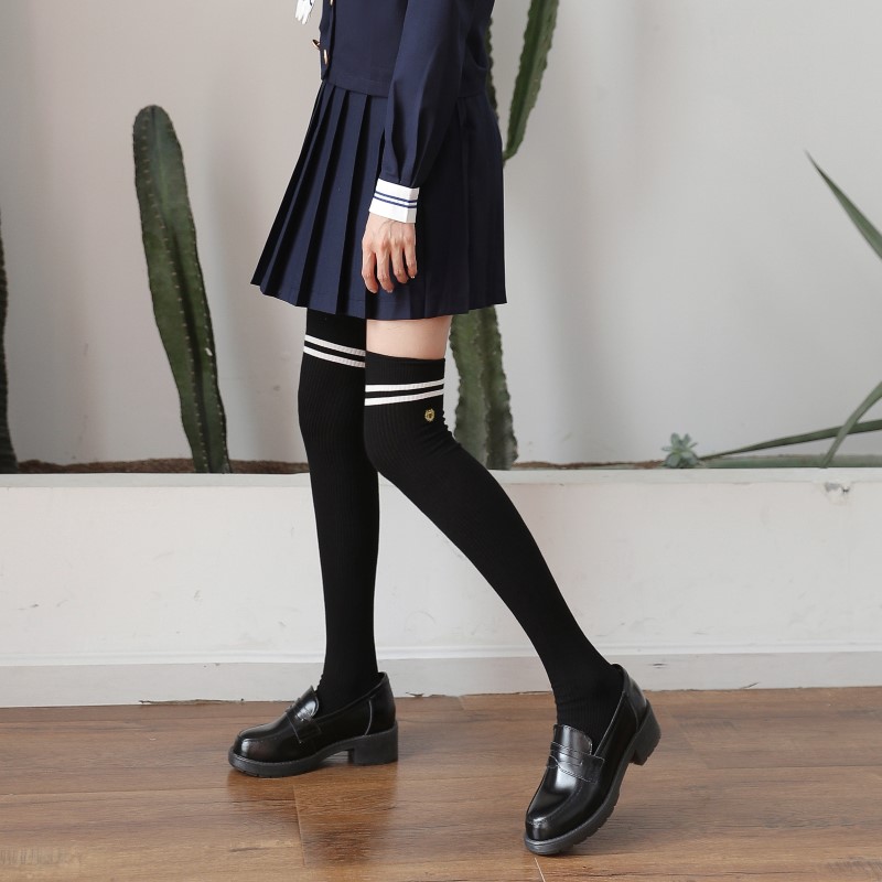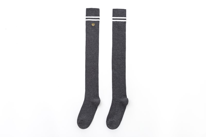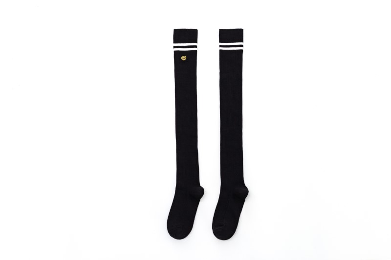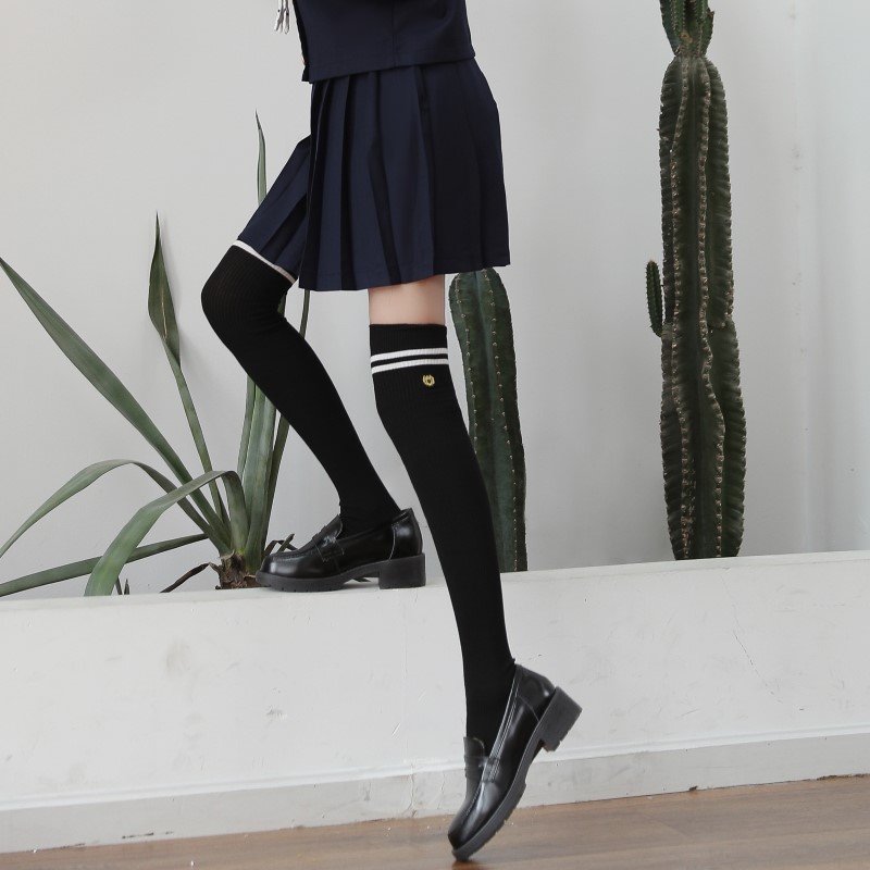 3111 double-needle two-bar badge embroidered over-the-knee socks