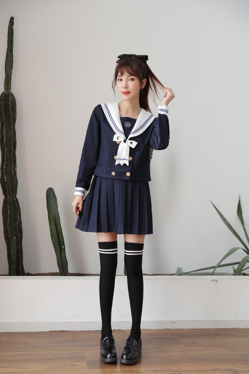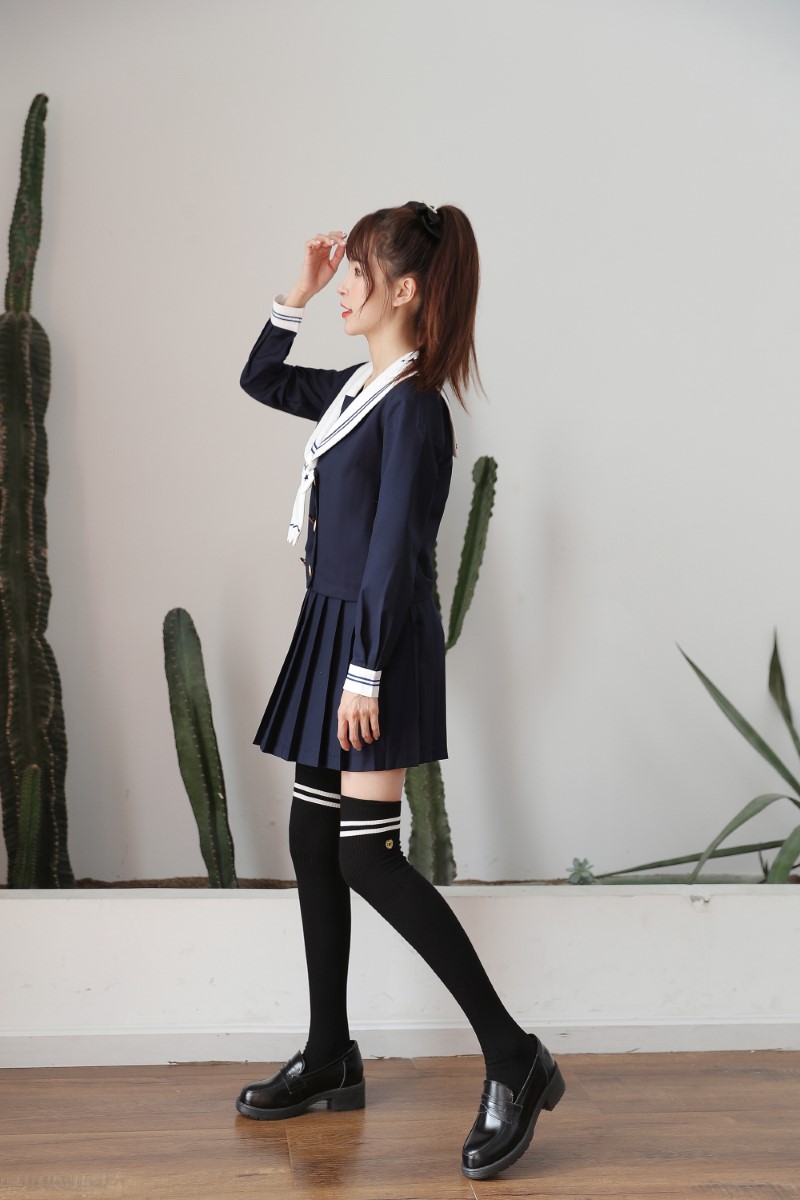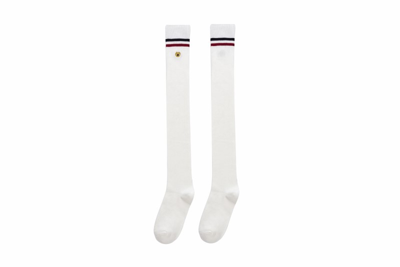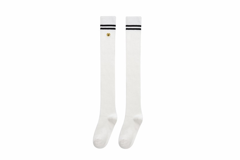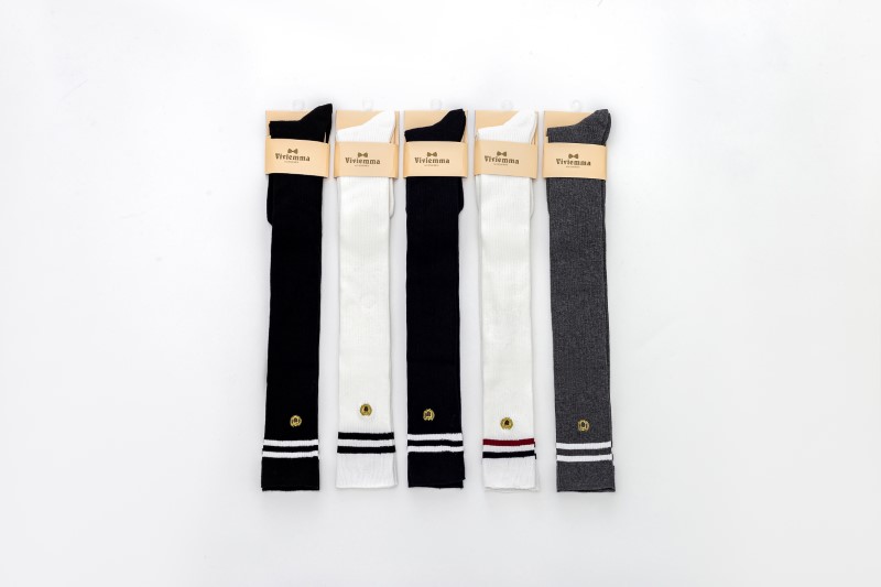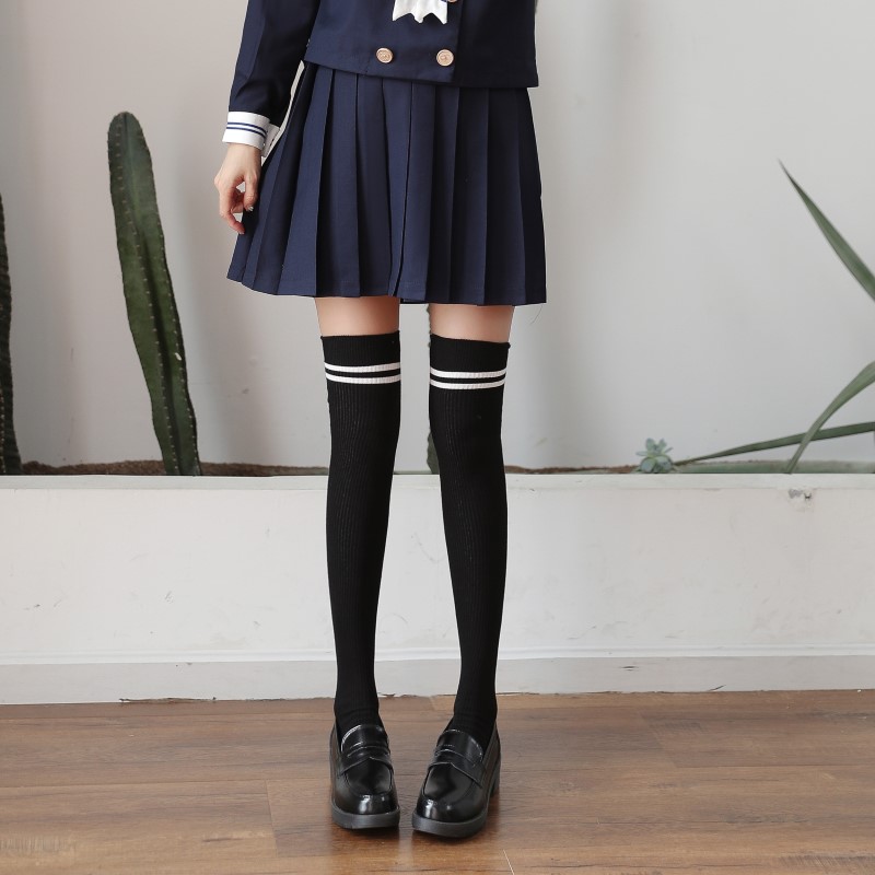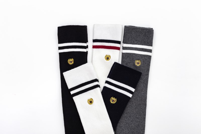 3111 double-needle two-bar badge embroidered over-the-knee socks