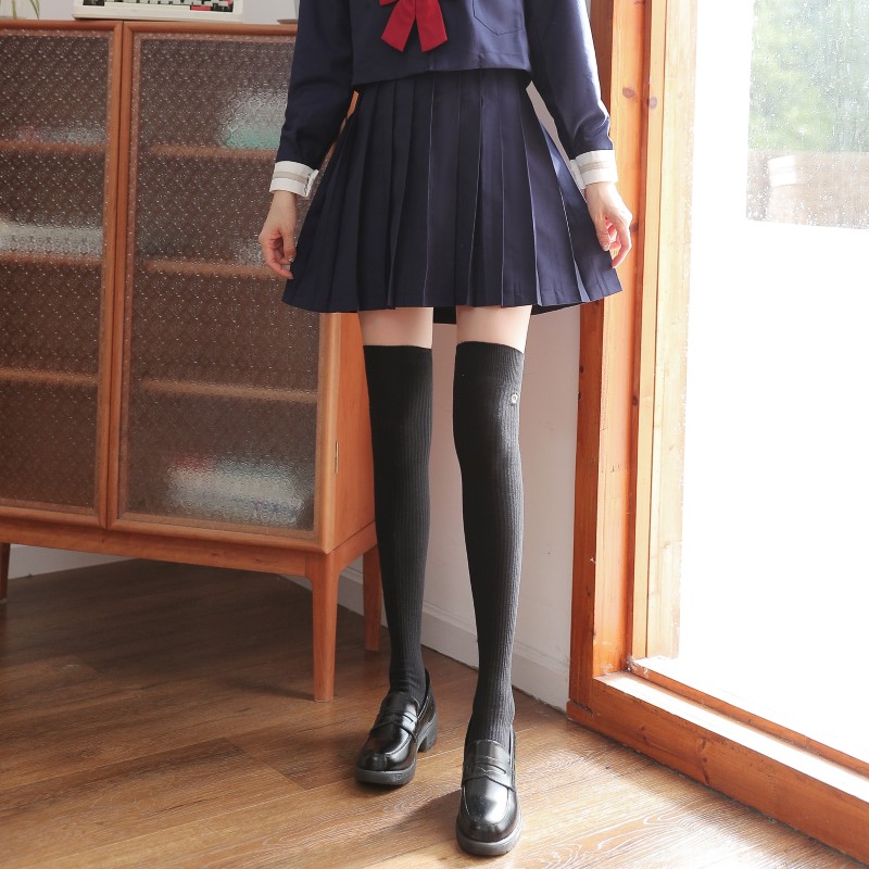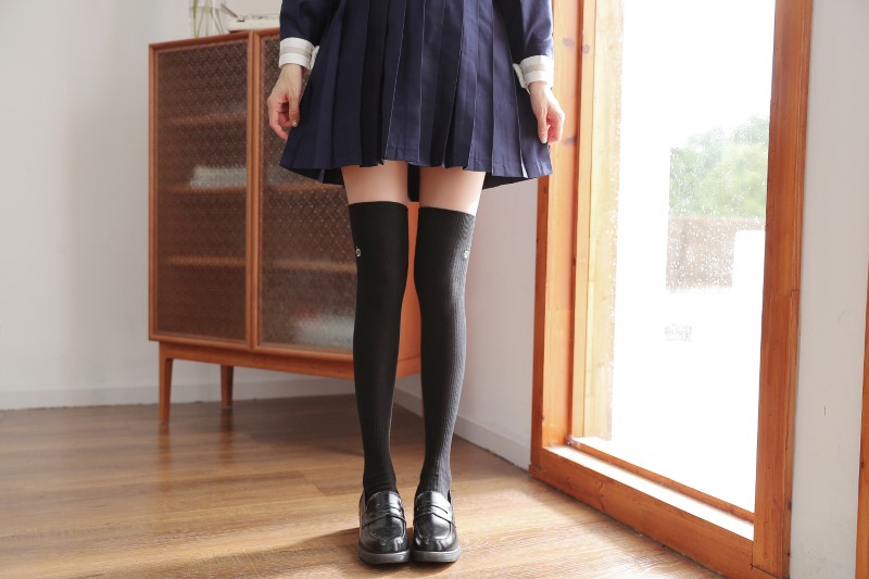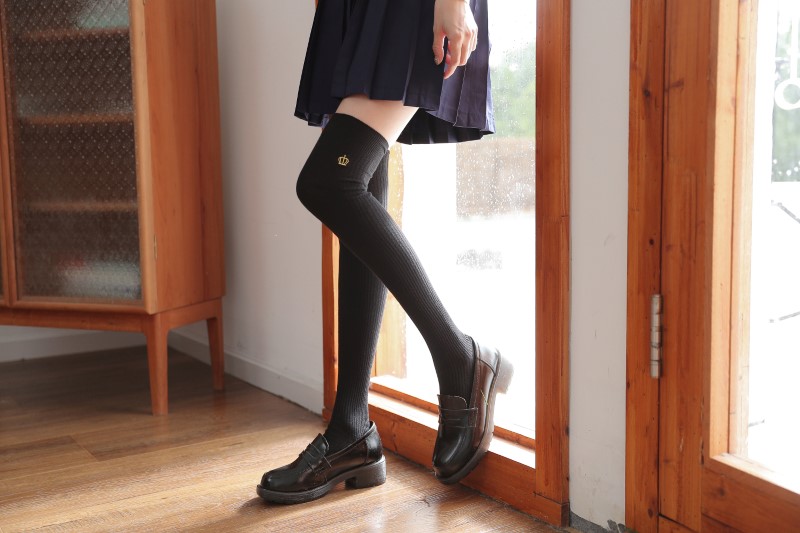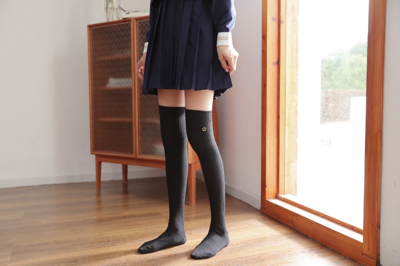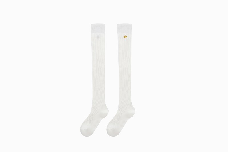 3112 Double Needle Crown Embroidered Over the Knee Socks