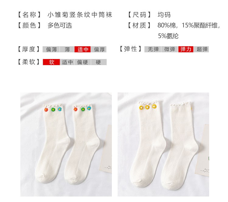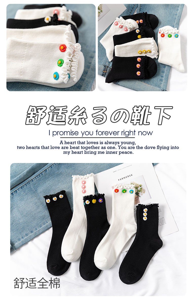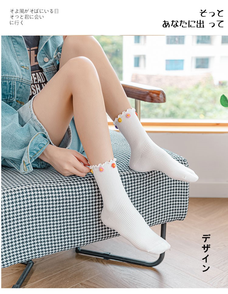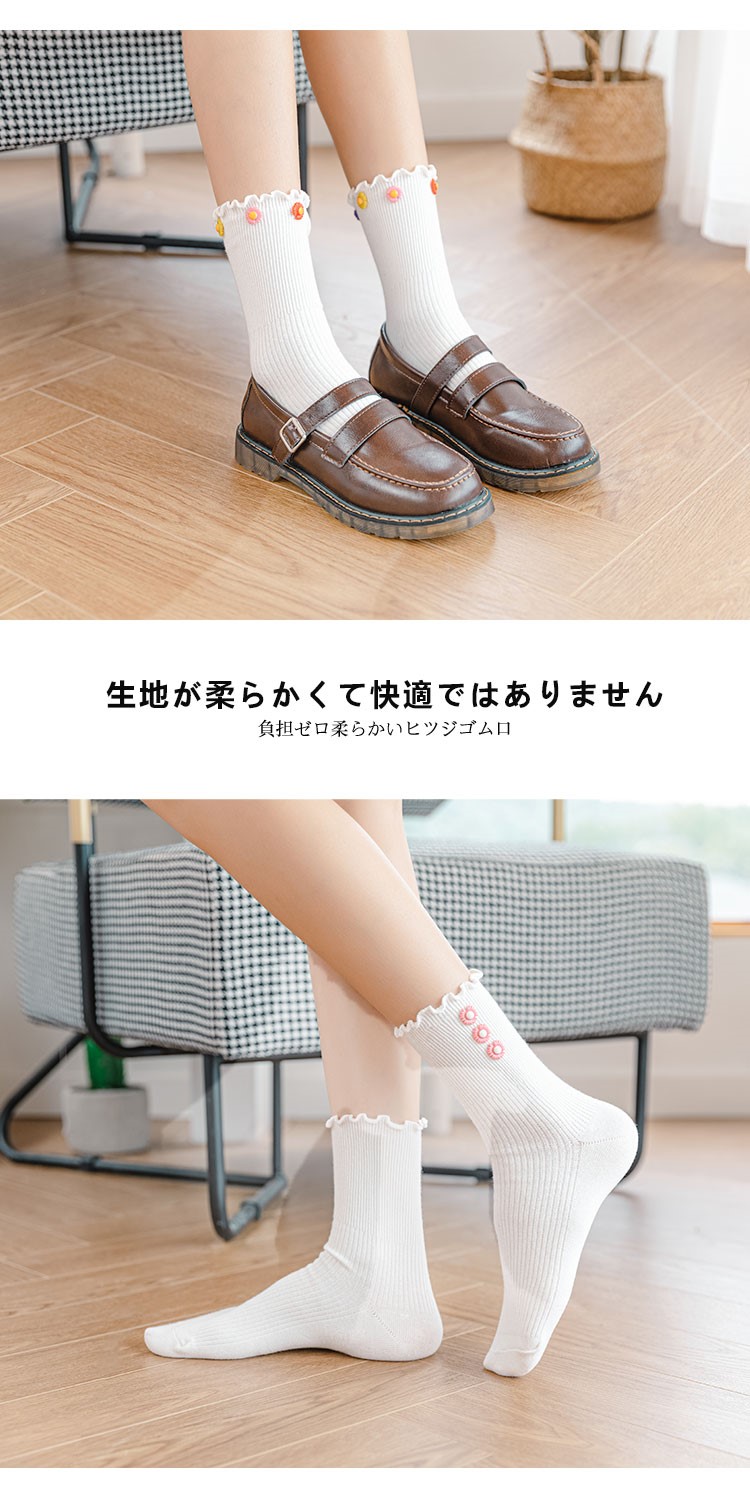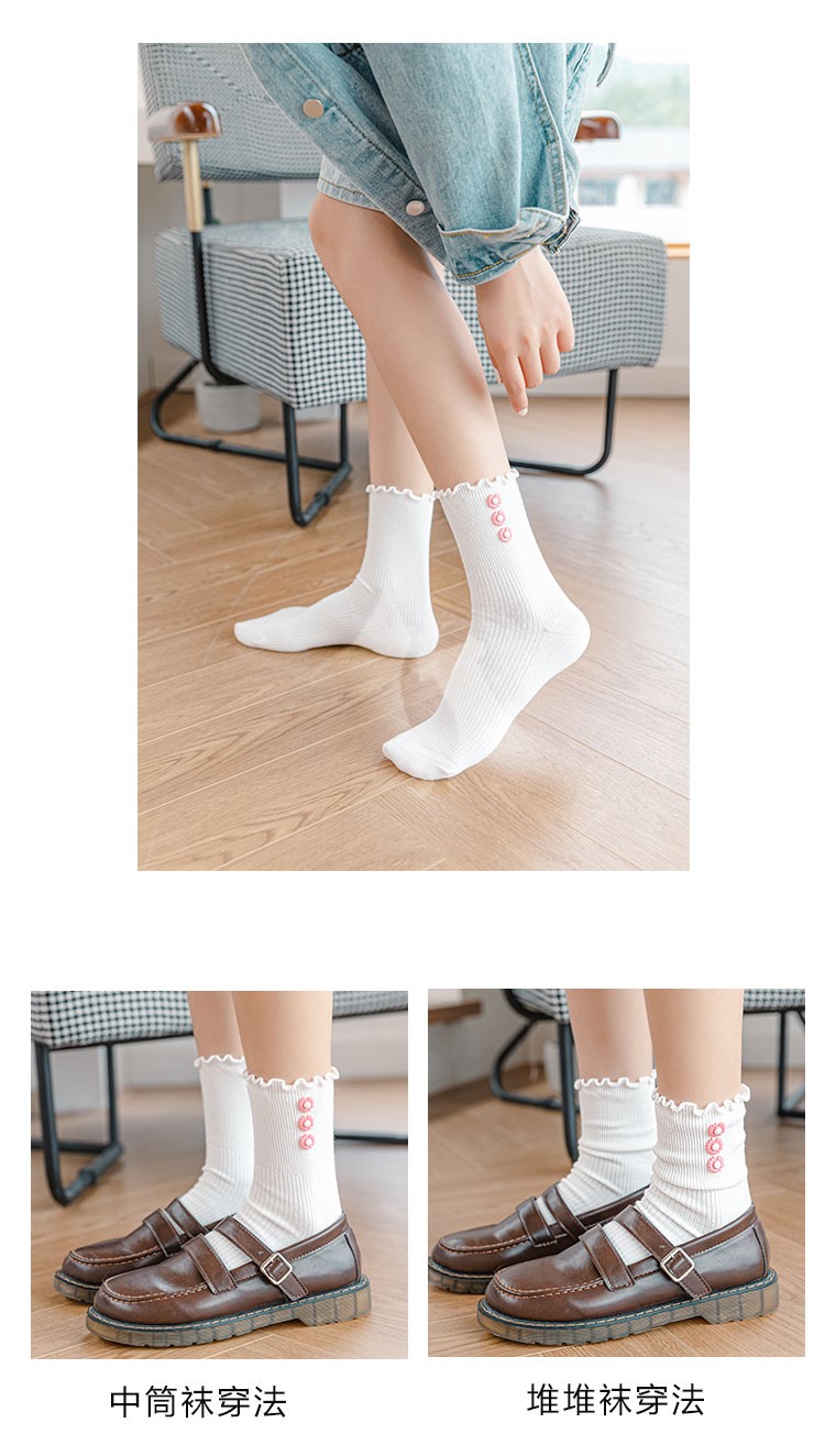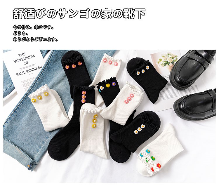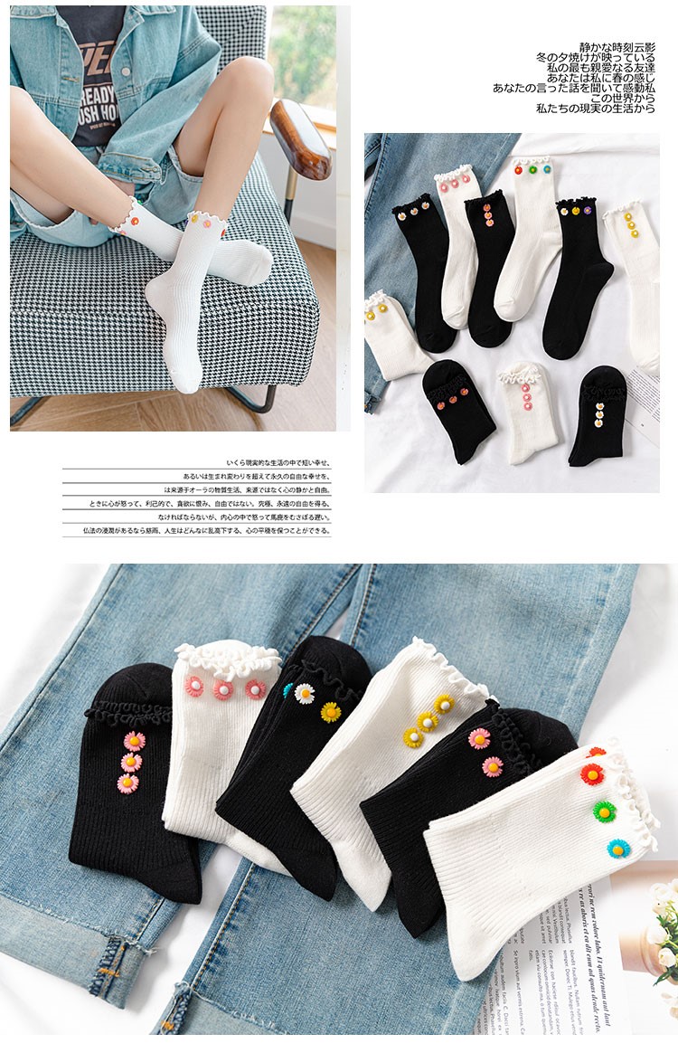 Cotton socks with small chrysanthemum buckle and wood ears