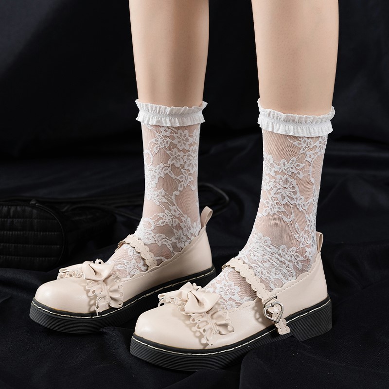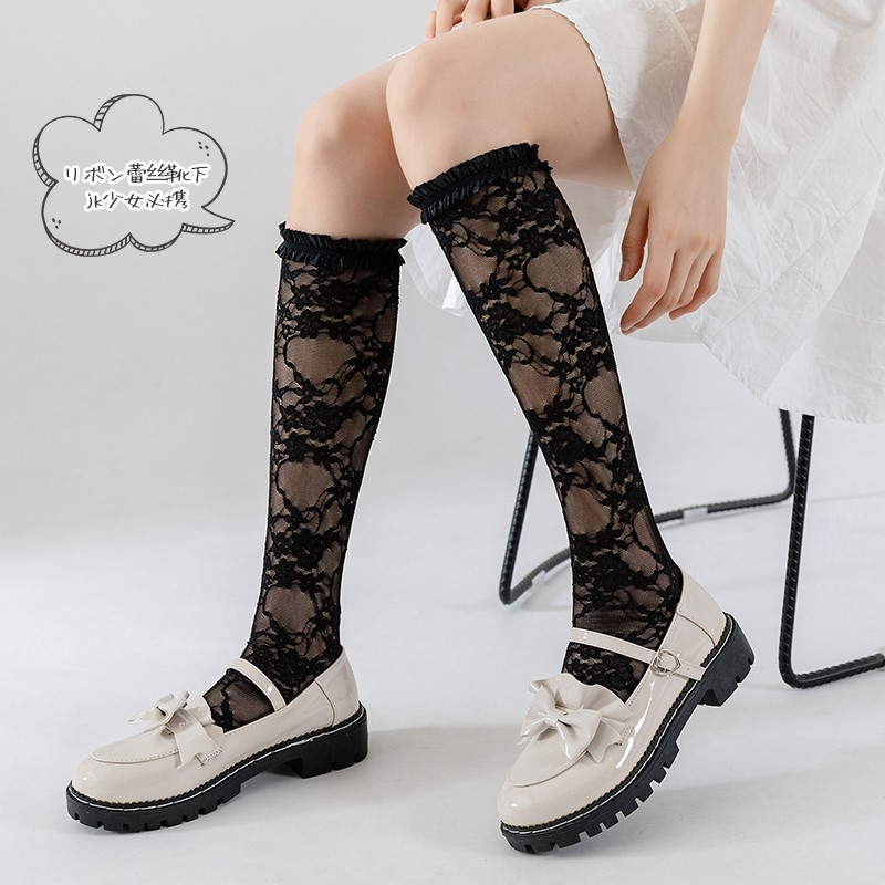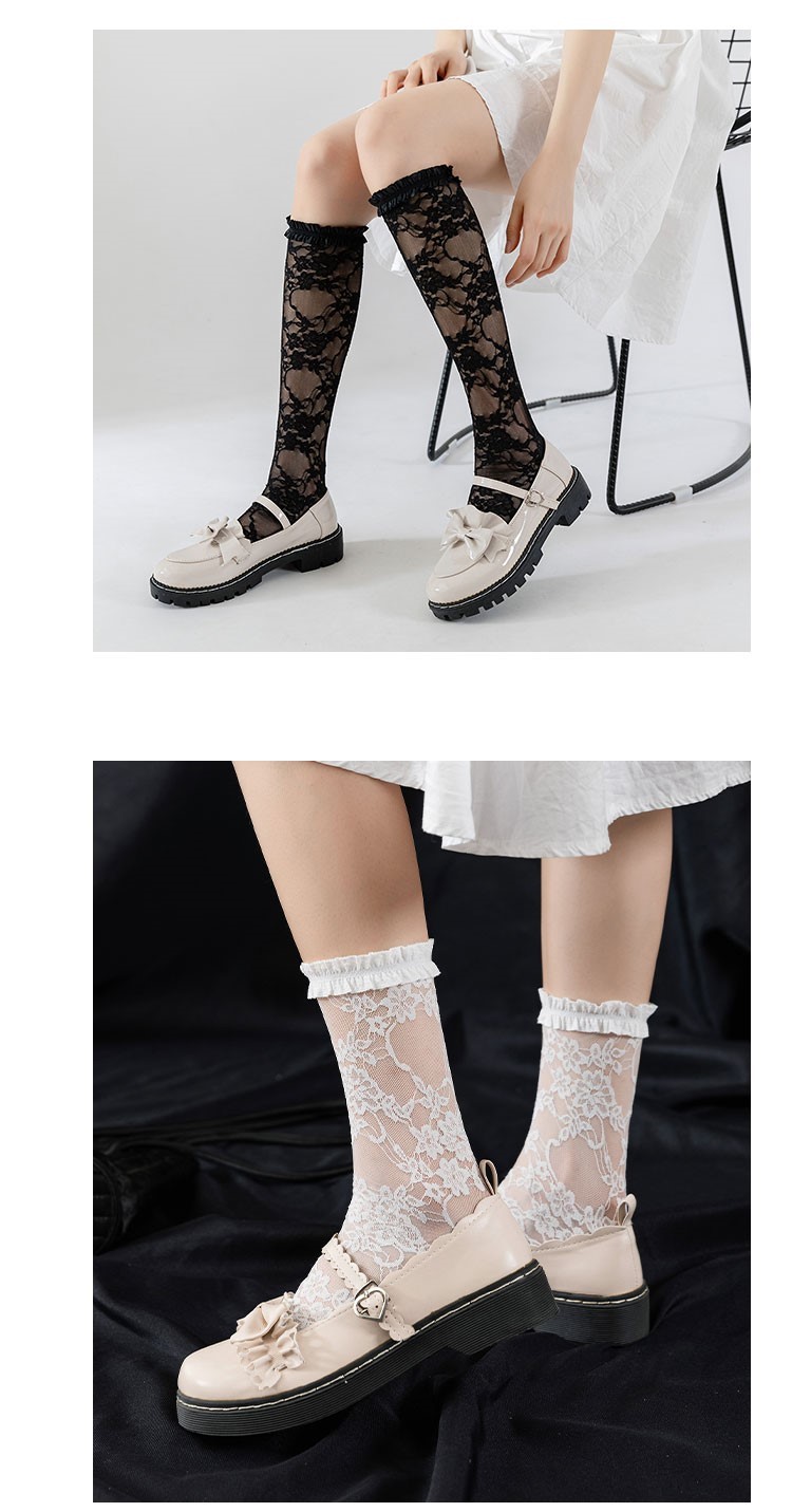 Plaid and five-star flower lace stockings
